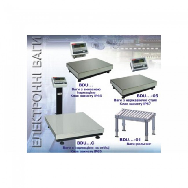 Електронні товарні ваги серії BDU «БЮДЖЕТ» виробництва Ваги АКСІС Україна складаються з корпусу виготовленого з чорного металу з елементами захисту від перевантаження, приймальної платформи (полірована нержавіюча сталь), стійки , одного тензометричного датчика IP66 (Zemic), та вагопроцесора AXIS-01 висота цифр 18мм, LED, IP54). Можливе виконання із вбудованим акумулятором.