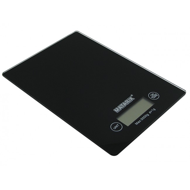 Весы кухонные Matarix MX-402 имеют стеклянную поверхность.